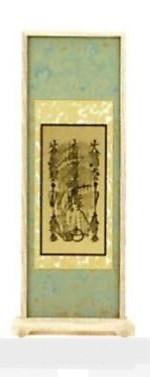 スタンド型のため、掛け軸自体で立たせる事が可能です。留め具不要でお祀りいただけます。