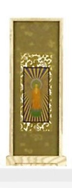 スタンド型のため、掛け軸自体で立たせる事が可能です。留め具不要でお祀りいただけます。